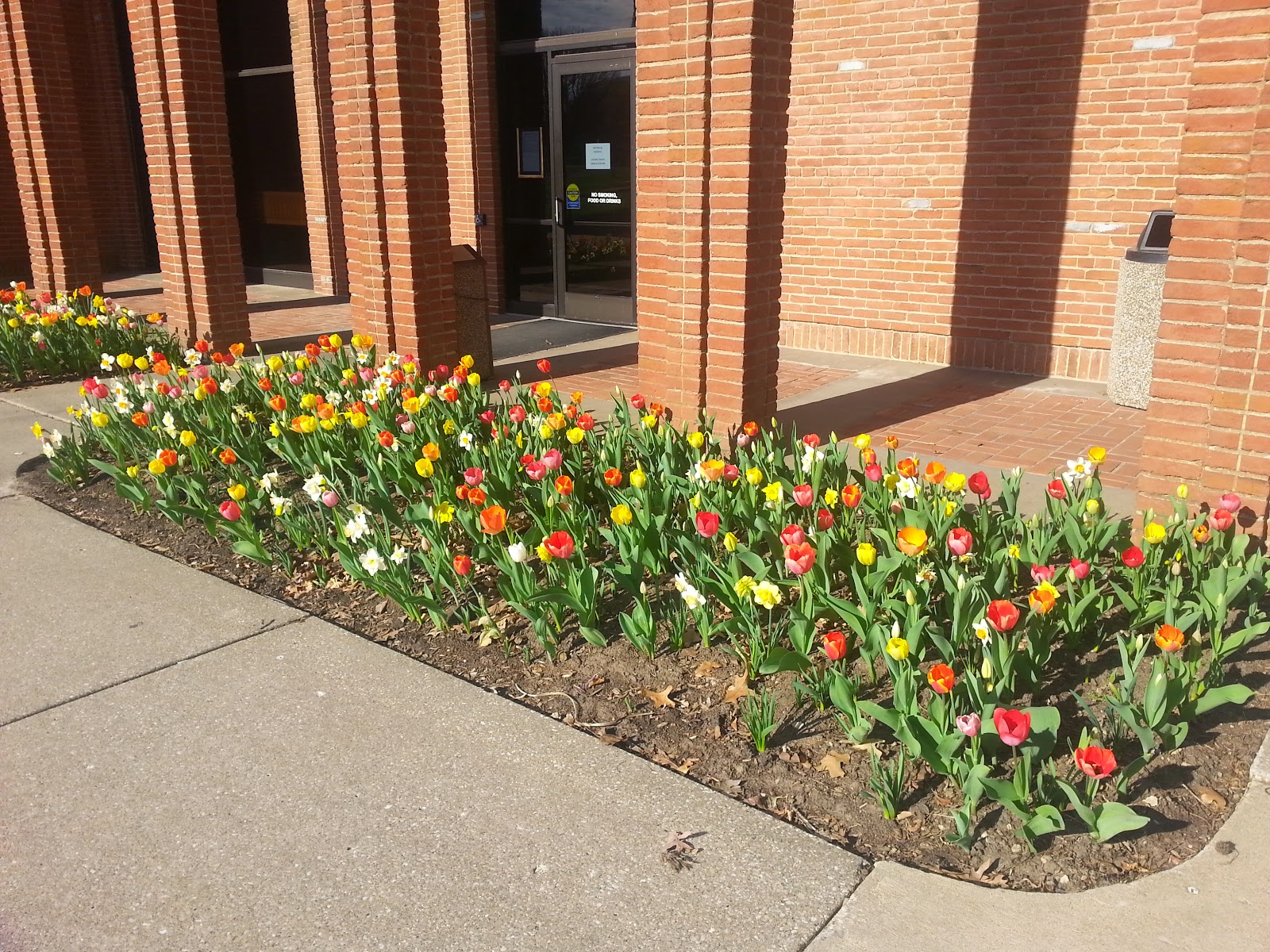 This is the garden area in front of the Nauvoo Visitors Center. The flowers were reaching high in the sky for that welcomed sunlight. They will all be over the bloom in just a few weeks and then the gardeners here will plant tens of thousands of additional flowers that are currently growing in the mission green houses.